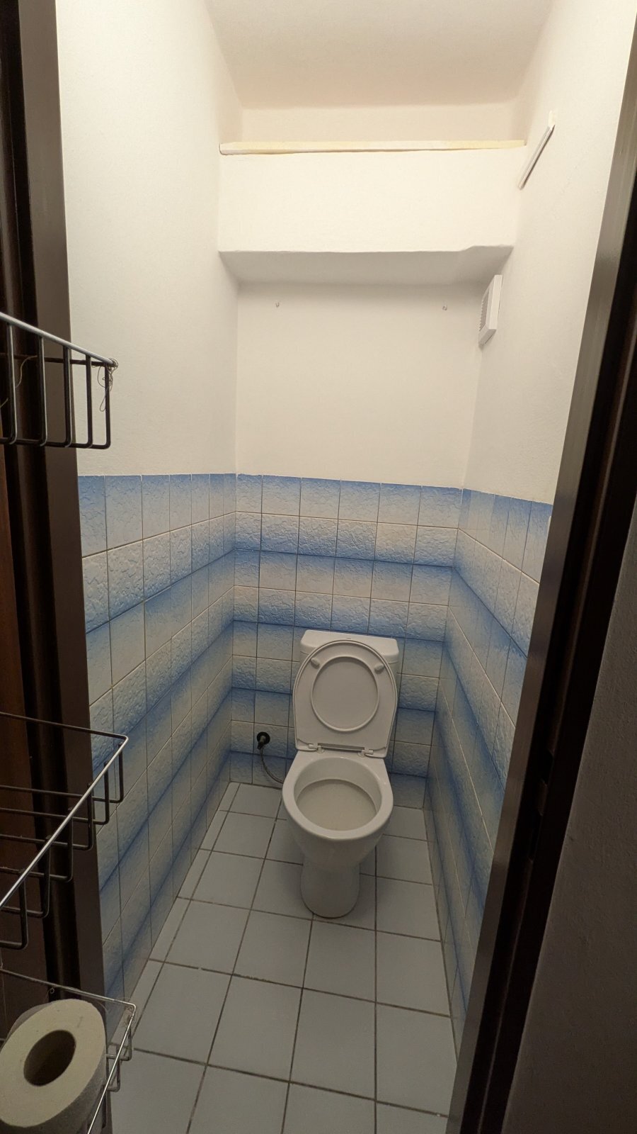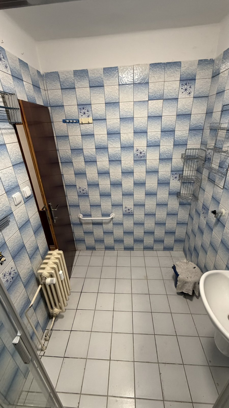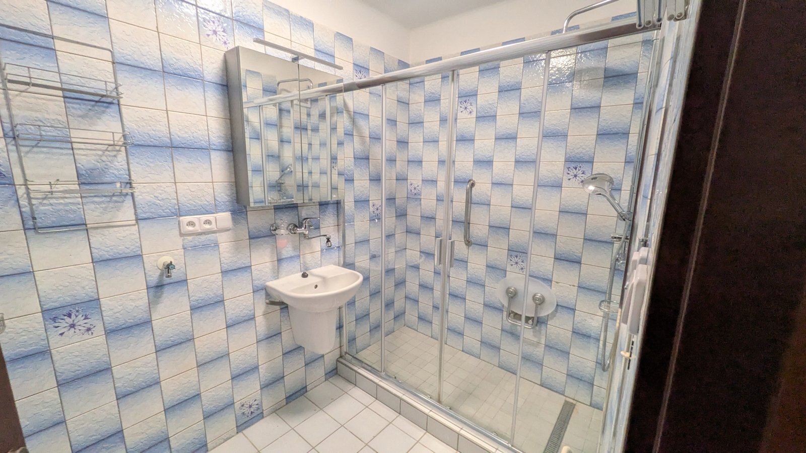 Původní zděná koupelna – prostorná sprcha, umyvadlo, místo na pračku), samostatné WC. Plastová okna a balkónové dveře vč. žaluzií na jih (krásné dlouhé pohledy).