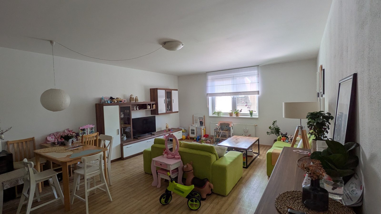 Částečně „zařízený zděný byt 2+kk (74,42 m2), zkolaudovaný v r. 2009, 2/2 patro bez výtahu.