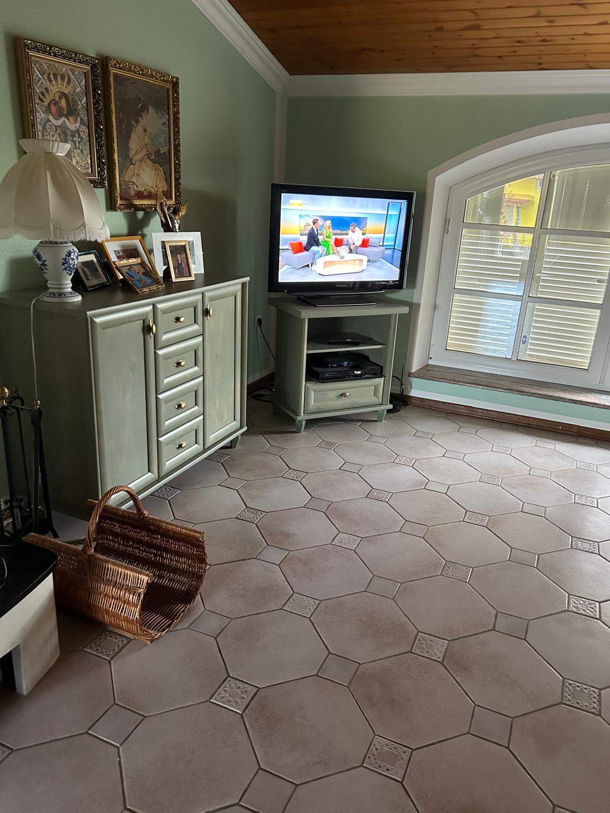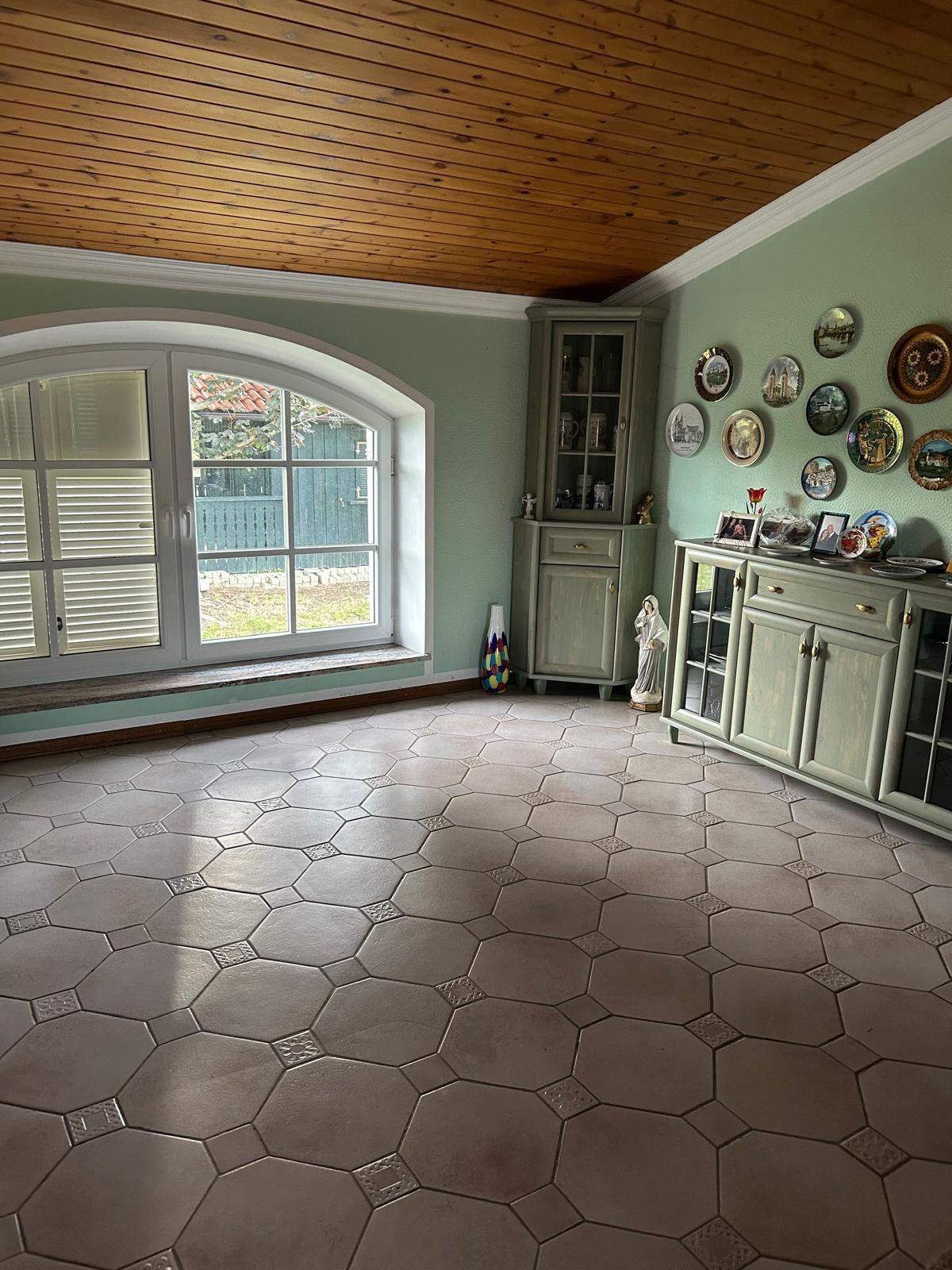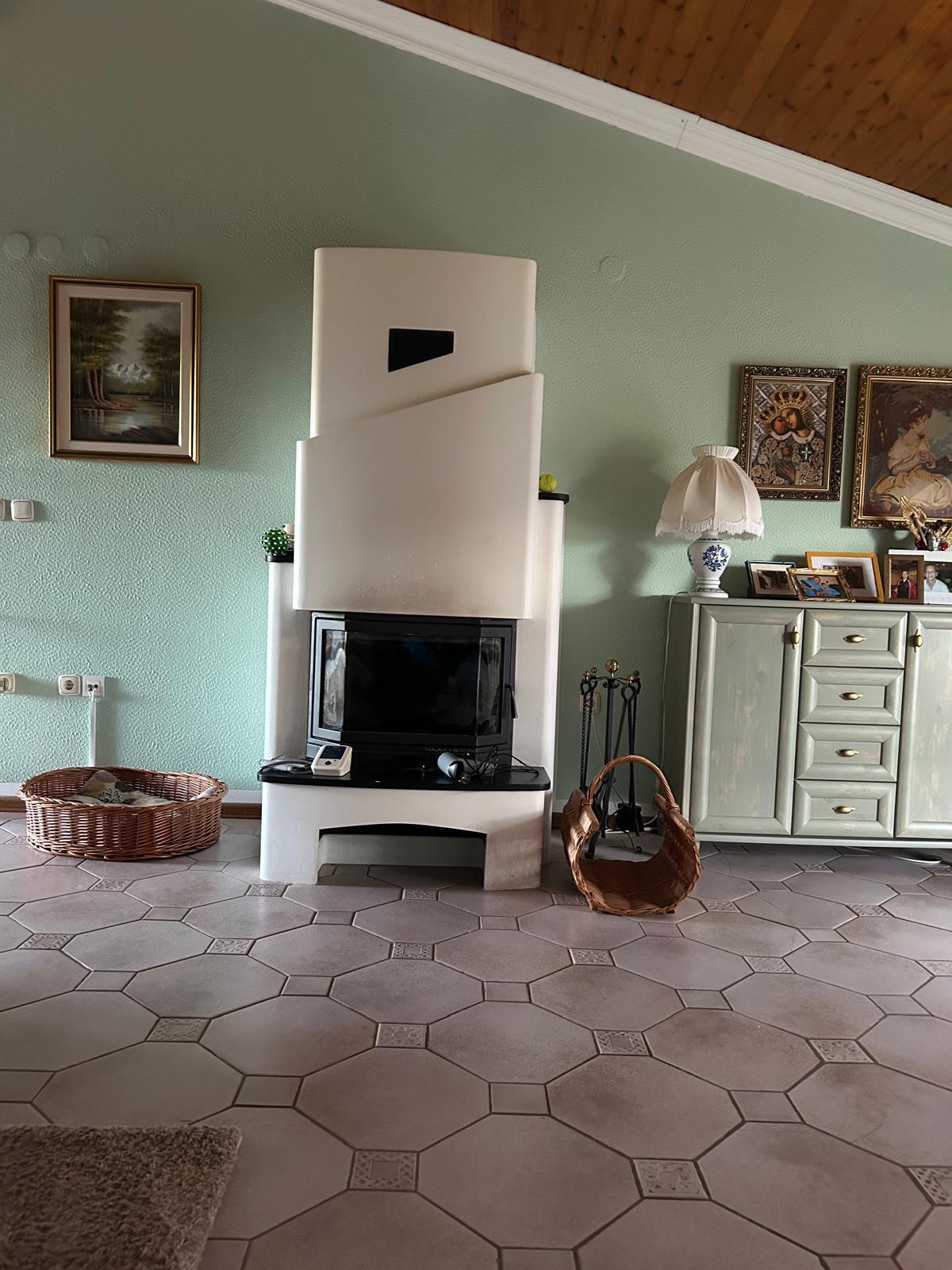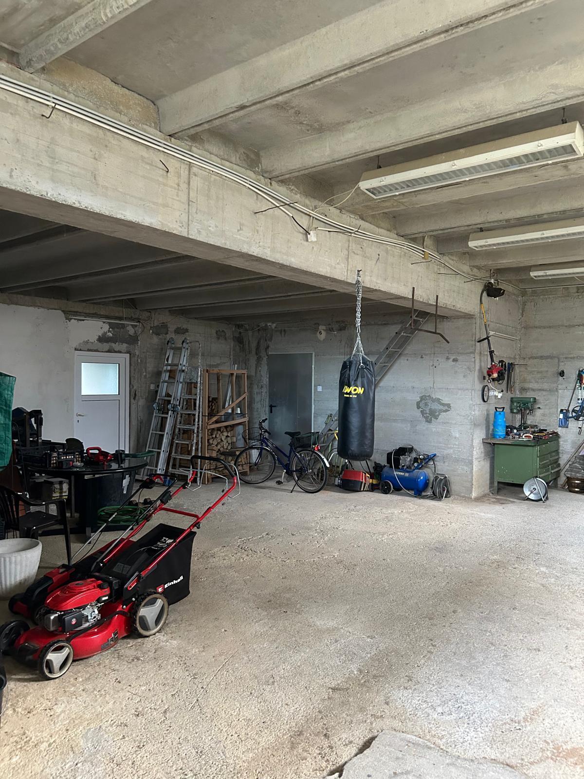 V 1NP domu je kuchyně s výtahem pro zásoby z garáže, obývací pokoj s krbem, 2x pokoj, koupelna (sprchový kout, WC), 2x terasa. Vytápění podlahové.