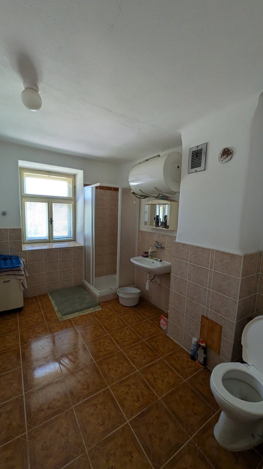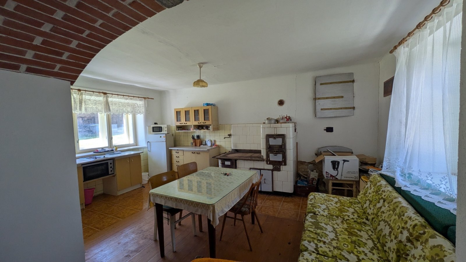 Obytná část o dispozici 3+kk s prostornou koupelnou se sprchovým koutem a WC se nachází v levé části usedlosti, která byla využívána k víkendovému bydlení. Nemovitost byla po roce 1999 průběžně rekonstruována.