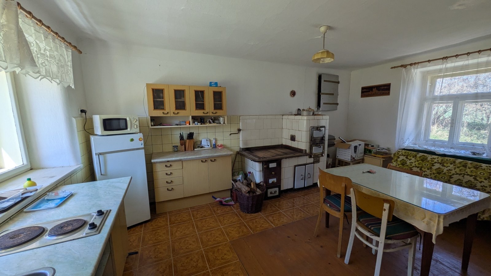 Vytápění je v současné době lokální na tuhá paliva. V kuchyni jsou původní stylová kachlová kamna.